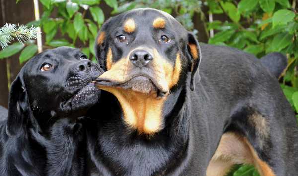 Ротвейлер и лабрадор.