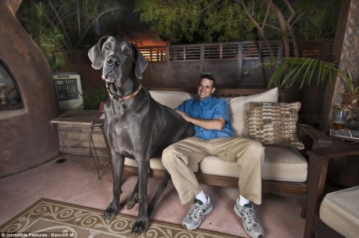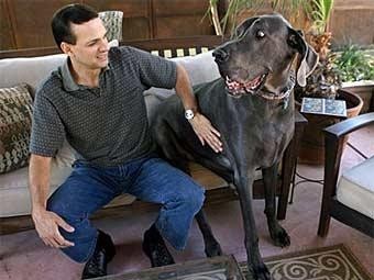 Теперь самой большой собакой в мире считается немецкий дог по кличке Зевс, возраст которого составляет пять лет, он также живет с хозяевами в США: