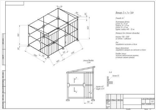 Для створення вольєру своїми руками необхідно визначитися з розміром території, на якій він буде розташовуватися і потім створити креслення.