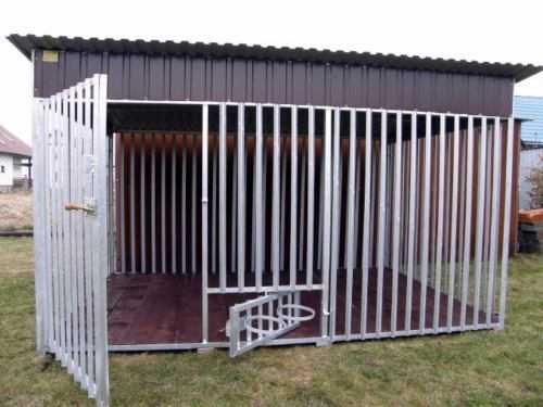 Вольєр складається з трьох металевих і однієї ґратчастої стіни, щоб собака могла спостерігати, що діється навколо її вольєра. Стіни з металу обшивають деревом, а потім обробляються спеціальним розчином. Якщо вольєр утеплений, то додатково потрібно прокласти стіни пінопластом.